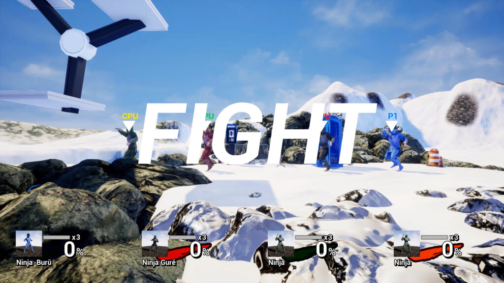 platform fighter for a single player versus 3 computer controlled characters. You play as a street disciple ninja and the ninjas are at war with each other.